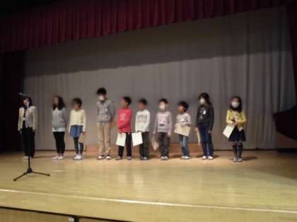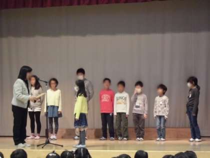 3/7 全校朝会(せたがやの子 入選者表彰)