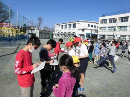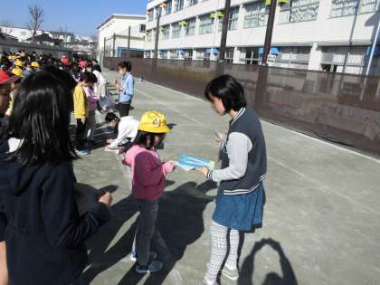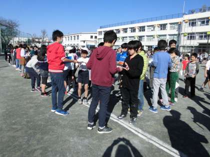 今日は、今年度最後の集会で、6年生とのサイン交換をしました。