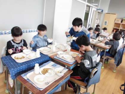 どの教室でも、久しぶりの給食を食べて「美味しい!」と笑顔が一杯でした。