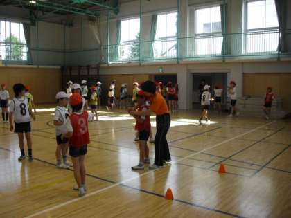 運動会に向けて高学年リレーの朝練習が昨日から始まりました。今朝までの雨のため今日も体育館での練習ですが、チームごとに準備運動やランニング、打ち合わせ、バトンパス練習など、工夫しながらおこなっています。運動会当日が今から楽しみです。