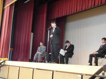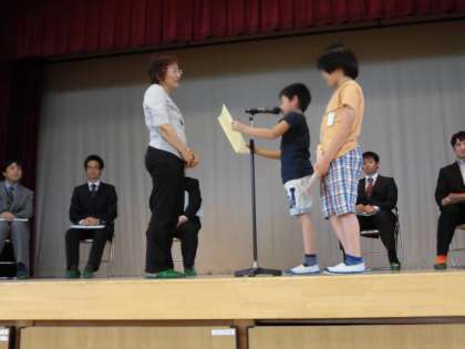 代表児童によるお別れの言葉と、本校を去られた先生方お一人お一人から心のこもったお話を、みんなで真剣に聞きました。