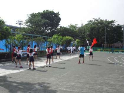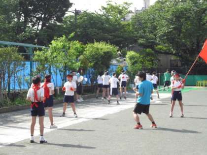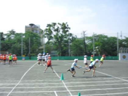 天候が晴れて、今朝の朝練習は校庭です。リレーも応援団もこの日を待ちかねていたように、青空の下で練習を始めました。指導する先生方も熱が入ります。6月5日の当日も今日のような天候を祈ります。