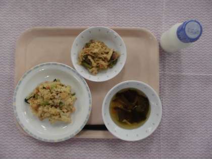中華風おこわ 牛乳 切り干し大根の煮つけ 若竹汁