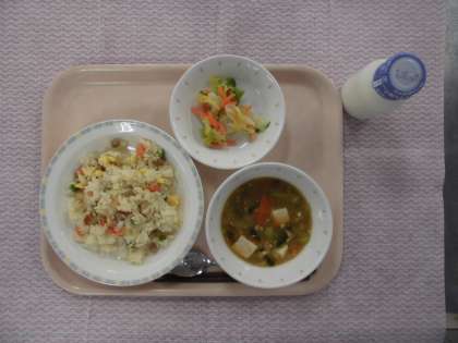 チャーハン 牛乳 麻婆スープ 辣白菜