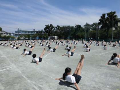 6年生「組体操〜ONE〜」の練習風景です。