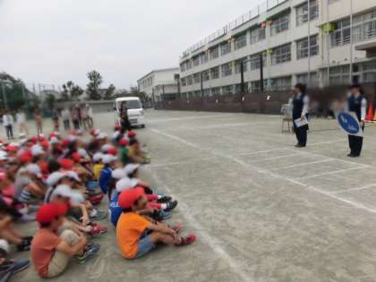 玉川警察署の方々をはじめ、地域の方々、PTA校外委員会の方々にご協力いただき、今日の行事を実施することができました。ありがとうございます。これを1つの機会として、学校や家庭、地域が一体となり、安全・安心な町になっていくよう、これからも指導していきます。(3年担任)