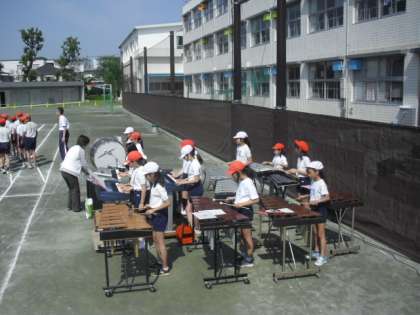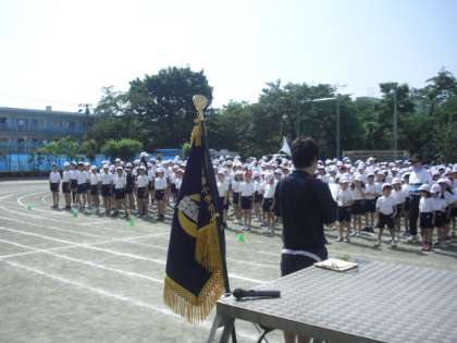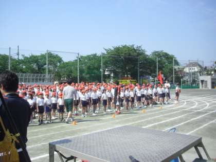 1時間目に、はじめての運動会の全校練習をしました。入退場の音楽も子どもたちが演奏します。広くなった校庭で、紅白に分かれて開・閉会式の練習をしました。青空がとてもきれいで、この空が5日(土)にも広がってくれることを願います。
