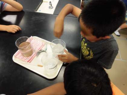 4年生は、下水道の出前授業がありました。手や食器を洗った後の水はどこへ行くのだろうかという疑問を持ちながら、学習に臨みました。海に流れ着いた油の固まりを見たり、マンホールの中の様子を映像で見たりし、水の循環を実践的に学ぶことができました。限りある資源である水を大切に使っていけるよう、学習を進めていきます。