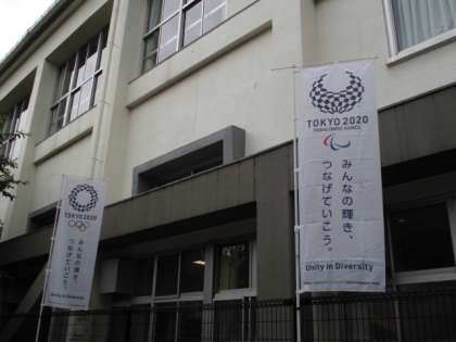 2020東京オリンピック・パラリンピック開催に向け、公共施設に公式ロゴマークのついた幟が届きました。