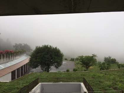 雨乞い山のハイキングですが、濃霧と天候不順のため、宿舎周辺のハイキングに変更しました。
