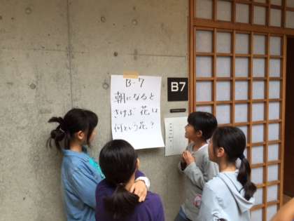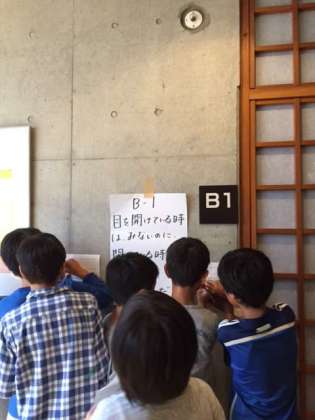 ハイキングか短めでしたので、午後の始めに雨天時のために用意しておいた室内レクリエーションを行いました。各部屋のグループごとに先生方が工夫を凝らして用意した様々なお題に挑戦していました。