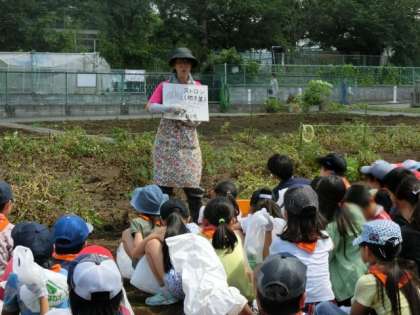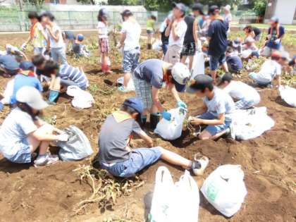 秋山農園の方に、じゃがいもの掘り方を一から説明して頂き、それぞれ一人二株掘りましたが宝の山のようにザクザクじゃがいもが出てきて大喜びでした。貴重な体験ができました。