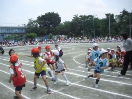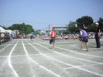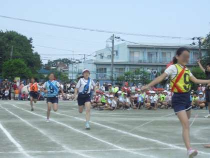 リレーは、運動会の花です。低学年リレーも高学年リレーも選手のみんながよく頑張りました。高学年の男子では、転んでしまっても素早くおきあがり最後まで全力を尽くして走る子どもの姿に感動しました。