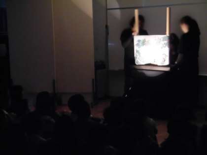 音楽と語り、巻物風の絵の効果により、物語の世界に引き込まれました。