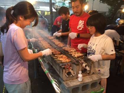 先生方が、毎年恒例となっている、おやじの会の焼き鳥屋のお手伝いをしました。