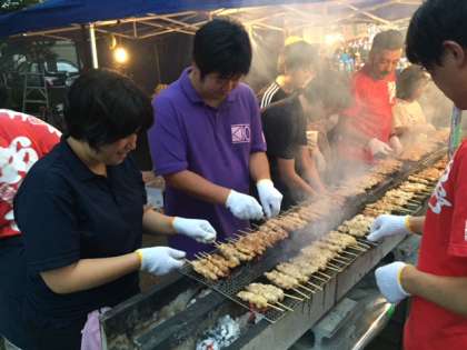 若手からベテランまで大勢の先生方が参加し、焼き鳥を焼くのは大変でしたが、煙に負けずに一生懸命焼いている姿は、チームワーク良くとても楽しそうでした。