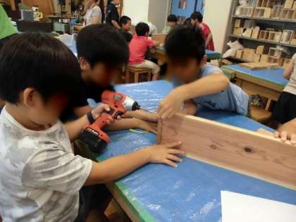 ワークショップが始まりました。「プランタープロジェクト」は、東深沢小学校、等々力小学校、東深沢中学校の3校合同で行います。1日目の今日は、慣れない電動ドリルに苦戦しながら一生けん命木材を組み立てました。明日はグループで考えたデザインを描いて着色する予定です。完成が楽しみです!