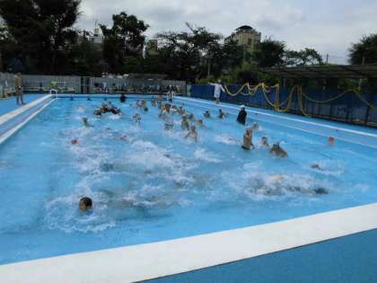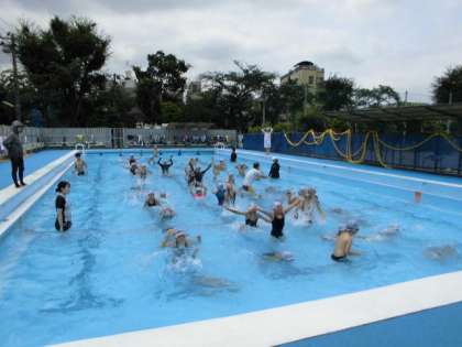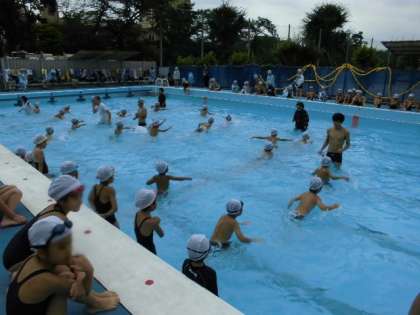 今年は、雨天のためなかなか実施できなかった「夏期水泳教室」ですが、本日は実施することができました。高学年42名、中学年64名、低学年102名の合計208名の児童が、久しぶりのプールを楽しみました。教員4名、補助員3名、ほか、お手伝いの先生方や支援員さんもあわせて10名以上の指導員体制で安全に楽しく実施することすることできました。