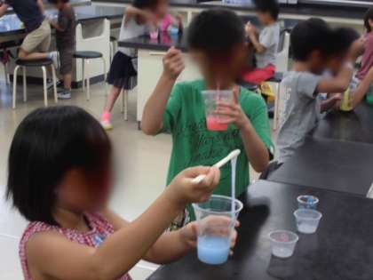 魔法の水を入れ、液体が固まっていくのを実際に感じ、不思議な気持ちやワクワクする気持ちを抱いていました。楽しみながら科学に触れ、スライムをつくることができました。
