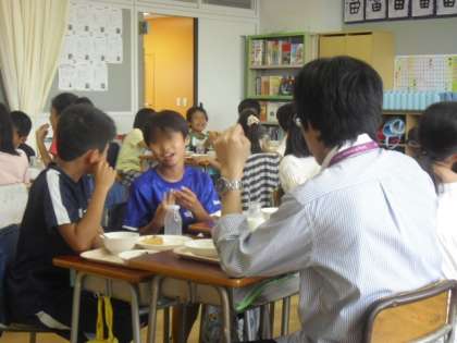 授業の後は、教室で一緒に給食を「いただきま〜す。」