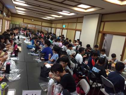 東観荘さんの広間をお借りして、待ちに待ったお弁当をいただきました。
