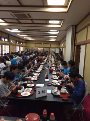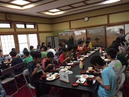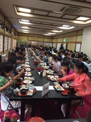 朝会をしっかり食べて、今日は華厳の滝などハイキングに出かけます。