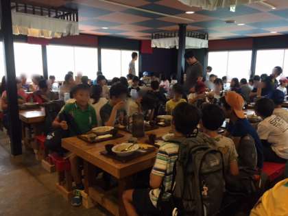 江戸村では、開園から午前中いっぱいアトラクションを楽しみました。昼食のカレーライスをしっかり食べて、12時40分に出発しました。