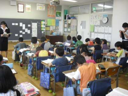 4週間の教育実習のまとめの授業です。2年生の「漢字の広場2 仲間の漢字」を学習しました。漢字の意味を考えて、意味の近いもの同士に仲間分けします。1年生と2年生で今まで習った漢字から考えました。「木・林・森」・・・たくさん考えて発表できました。子どもたちの意欲を引き出してくれてありがとうございました。
