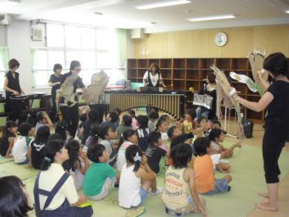 2年生の各クラスにDKOからのプレゼントです。「かいじゅうたちのいるところ」「はらぺこあおむし」「いのちのまつり」3本立です。