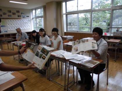 社会は、歴史の指導について教科書を見比べながら検討しました。