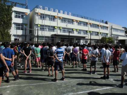 今日から2学期が始まり、児童の元気な声が学校に戻ってきました。始業式で校長先生から、リオオリンピックで銀メダルをとった男子4×100メートルリレーのバトンパスを通して、力を合わせることの大切さを児童に伝えました。