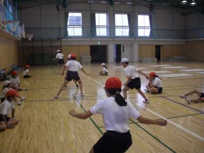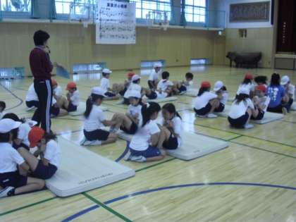 5年生の体力測定を体育館と校庭で行いました。梅雨ですから雨の降っていない日がチャンスです。自分の体力を知って、目標を立てます。