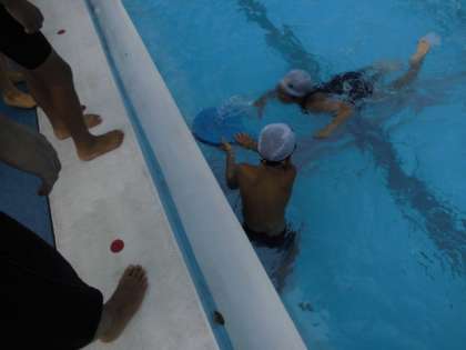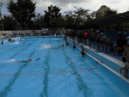 今年身に付けた泳力を確かめた後は、ビート板をバトンとして使っての「壁ドン」リレーや、水中でボールを送っていく「ボール送りゲーム」などを楽しく学習しました。