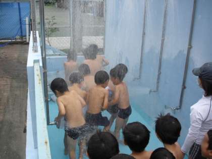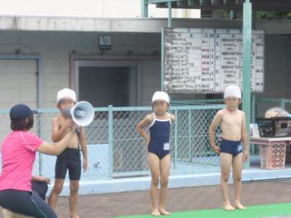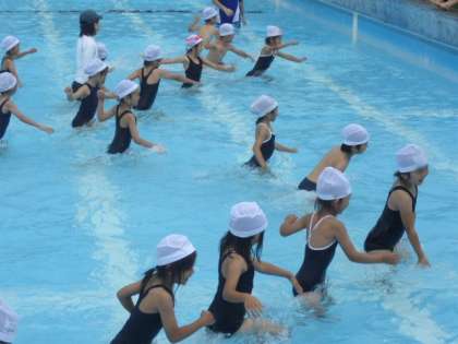 1年生は、小学校に入って初めての水泳学習です。天候が曇りでしたがプール開きを行いました。今日は、着替えの仕方やプールでの約束を学びました。そして、シャワーを浴び、プールに入りました。夏休みにも水泳指導があります。たくさん泳いで健康な体を作りましょう。