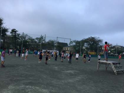 みんな元気に起きて、校庭でラジオ体操を行いました。
