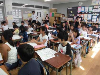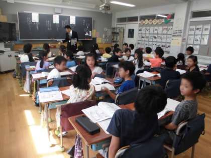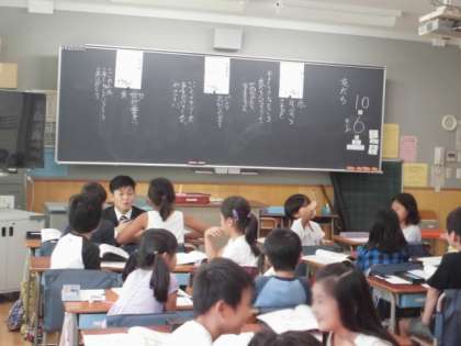 今日は、2年生で教育実習生の研究授業が行われました。「きょうからともだち」という道徳の授業でした。一人一人が違うということを理解して、互いの違いを認め合い、友達の大切さを感じる。というねらいの授業でした。副読本を勉強した後、最後に、となりの友達のよいところをみつけて、互いに伝え合ったり、クラス全体に発表したりしました。みな、自分の良いところを言ってもらえたことがとても嬉しかったようで、教室のあちこちで自然と笑顔がこぼれ、教室中がほんわかとした温かな雰囲気になっていました。