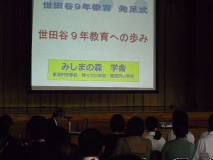 世田谷9年教育「みしまの森学舎」の発足式を東深沢中学校で行いました。