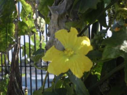 ヘチマの花には、シジミチョウやセセリチョウがまだたくさん飛んできているので、少しかわいそうな気もします。