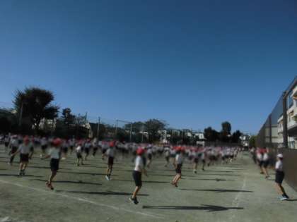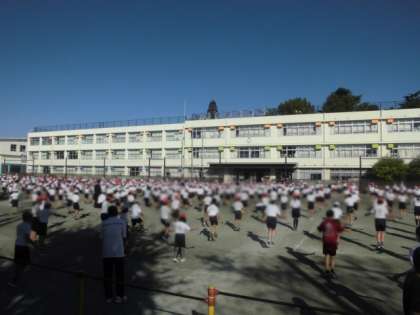 さわやかな秋晴れの空の下、体育朝会を行いました。