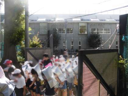 その後、近隣家屋から火災が発生し、南風にあおられた煙が校庭に充満する恐れがあるため、二次避難場所である東京学芸大学附属世田谷小学校に避難をするという想定で、訓練を実施しました。