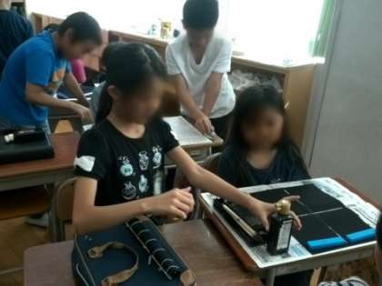 学習で、4年生にリードをしてもらい、