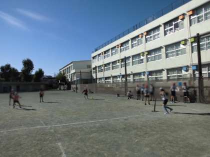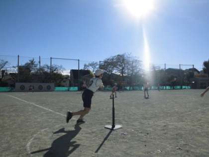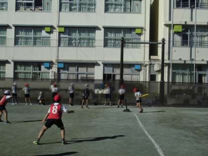 今日は冷たい風が吹きましたが、6年1組は5時間目に元気よくティーボールを行いました。