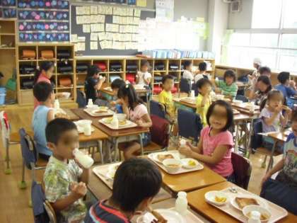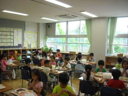 1年生もみんなで「いただきます。」とおいしく食べました。