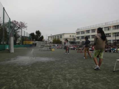 初期消火訓練では、教員代表と6年の児童代表が、消火器を使って模擬初期消火を行いました。