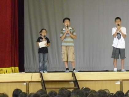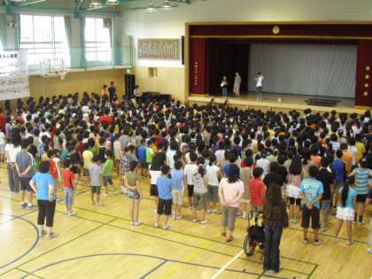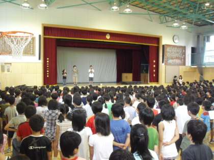 外は暑いのですが、朝の体育館は子どもたちの歌声でさわやかな気持ちになりました。