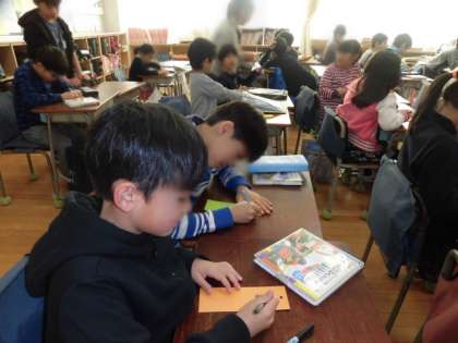 今日はひがしタイムで6年生へのプレゼントを作りました。ひがしタイムで一緒に遊んでくれたことを思い出しながら心をこめて丁寧に作っていました。