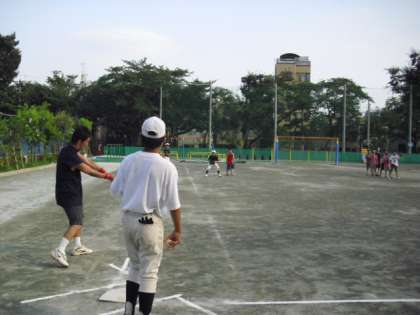 野球(応用)では、実戦形式でノックをし、最後に2チームに分かれて試合をしました。最後は6年生の逆転サヨナラ場外ホームランで幕切れとなりました。とても暑い中でしたが、みんな楽しそうに白球を追いかけていました。初心者も一緒になって楽しめたワークショップでした。