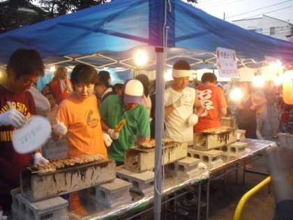 この盆踊りには、おやじの会も「焼き鳥屋さん」で参加しています。ひがしの先生方も、焼き鳥の焼き手として活躍しました。おやじの会の方々も快く先生方に焼き手を任せてくれました。「焼き鳥焼くのは暑いけど、楽しい〜」と言っていました。町会の皆様、おやじの会の皆様ありがとうございました。