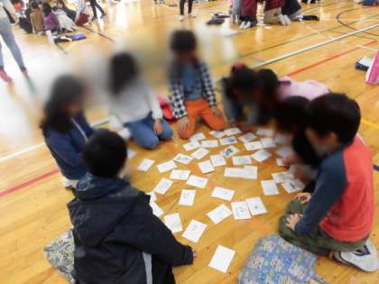 互いに自己紹介をした後、手作りカルタで遊びました。また、校庭に出てどんぐり山の遊具で遊んだり、鬼ごっこをしたりしました。この2時間を通して、地域の温かいつながりを実感することができました。