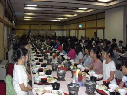 また、おいしい夕食を準備していただきました。子供たちも大満足の夕飯でした。なかには、ご飯を5杯も食べた子がいました。明日の食事も楽しみです。